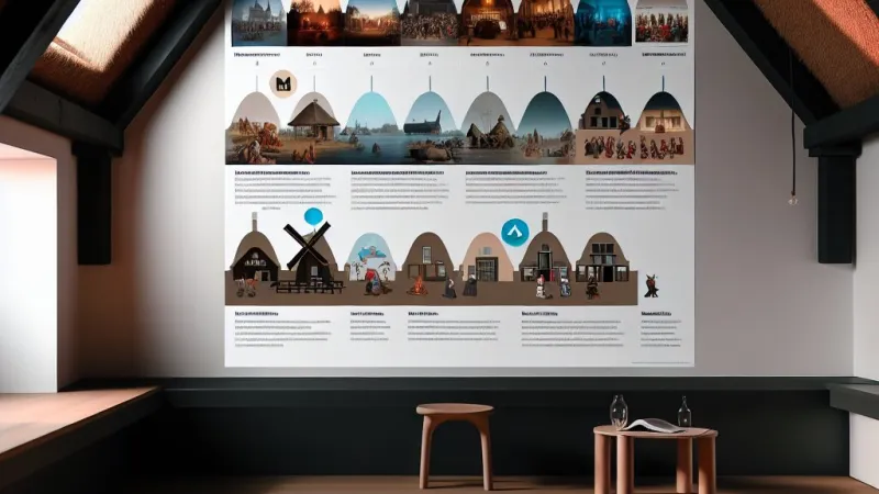 De vroege middeleeuwen stonden in het teken van ontreddering na de Romeinse val, maar ook van consolidatie. De landbouw werd georganiseerd rond domeinen, waarbij horige boeren afhankelijk werden van hun leenheer volgens het hofstelsel. Kastelen en abdijen verschenen in het landschap, met monniken die in kloosters het geschreven woord en kennis van klassieke teksten bewaarden. Vanuit plekken als het Friese Woudagastel werd het christendom verder verspreid door missionarissen zoals Bonifatius. Tegelijkertijd bracht de opkomst van de islamitische wereld een nieuwe kennisuitwisseling langs handelsroutes als de Zijderoute, zichtbaar in de befaamde bibliotheek van Córdoba. Vikinginvallen creëerden onrust, maar droegen indirect bij aan de verdere centralisatie van politieke macht, zichtbaar in het ontstaan van vroeg-middeleeuwse vorstendommen.B. Tijdvak 4: Tijd van steden en staten (1000 – 1500)